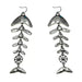 This aesthetic earring featuring silver-tone fishbone segments linked by chains. with a whale-tail charm and small turquoise bead for ocean-inspired detail
