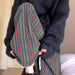 This aesthetic knit pants featuring a vintage stripe pattern in green. red. and mustard tones. Designed with wide legs. elastic waistband. and soft knit texture. they bring a cozy retro look with a relaxed fit