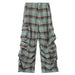These plaid baggy cargo pants feature an adjustable drawstring waist. oversized ruched legs. and multiple utility pockets